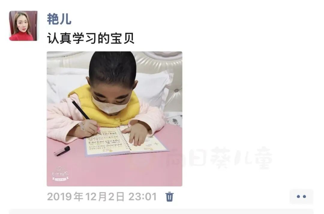 夜里,我几乎不敢合眼。一会儿怕她踢被子着凉,一会儿又担心盖太多闷热,反复起身掖被角;孩子的每一次出入量、每一次体征变化,我都认真记录在本子上;趁着她睡着的间隙,即便再累我也没有一丝睡意,利用这些时间我会翻看手机里病友群的聊天记录,学习护理知识、借鉴其他家长的经验,看到的字里行间都是支撑我走下去的力量。