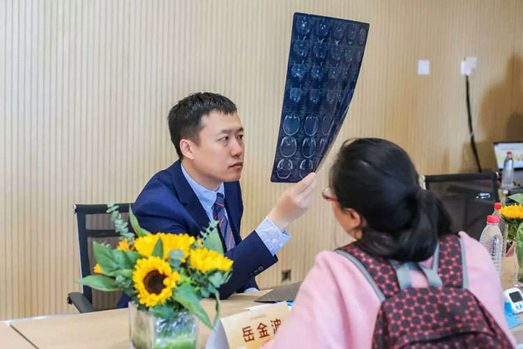山东省肿瘤医院放疗一科副主任岳金波与家长交流