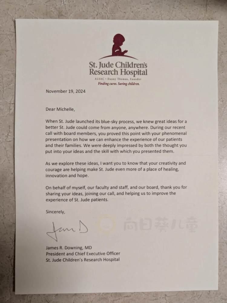 白天,黄爸爸在医院翻译各种所需要提交的材料,晚上就逐个回复电子邮件和提交材料。经过“治疗家庭团”的慎重沟通,决定首选波士顿儿童医院和圣裘德儿童研究医院。这两家医院在美国儿童白血病治疗方面非常有名,其中圣裘德儿童研究医院是美国甚至世界上最为特殊的一家顶级儿童医院——只要能够被成功接收,费用全免。但这家研究性质的医院接收病人的标准也非常严格。在波士顿儿童医院的建议下,黄爸爸申请了远程诊断,并拿到了第二方案建议书,其中一位AML领域的知名医生同意接收小黄,她对于未来是否能参加Menin抑制剂临床试验也给了反馈信息。
