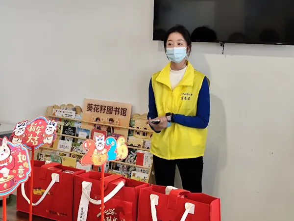 来自向日葵儿童团队的左佳介绍了“葵花籽图书馆”的设立初衷,并衷心感谢汇文中学师生的爱心捐赠。她表示,希望这些书籍能陪伴孩子们度过在病房中的治疗时光。