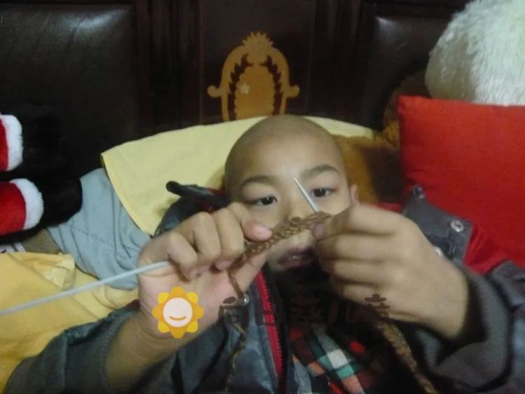 因为截肢后需要等伤口长好才能装假肢,所以安安大部分时间都是在床上度过。老是躺在床上,滋味不好受。我就找事给他做,在这个期间,安安学十字绣和用毛线打手套,尽管技术还没过关,这个小朋友已经幻想十字绣绣完、手套打完可以出去摆摊卖钱了。安爸教安安下象棋、玩三国杀,两人玩得不亦乐乎。