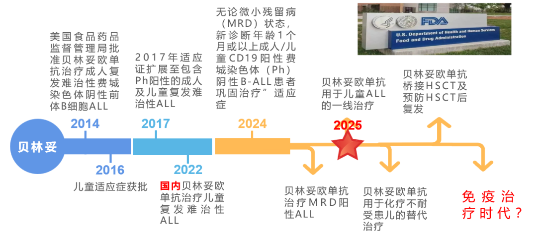 2025年,以我中心牵头的CCCG2025急性淋巴细胞白血病方案中,贝林妥欧单抗已明确加入一线治疗中。贝林妥欧单抗开启了它的闪光时刻,它可以治疗MRD阳性ALL,用于儿童ALL的一线治疗,用于化疗不耐受患儿的替代治疗,用于桥接HSCT及预防HSCT后复发。