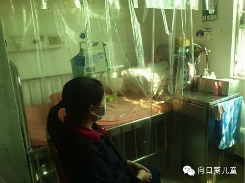 每次用药之后孩子白细胞和中性粒都会急剧下跌,甚至接近0,这时候不得不用层流床将孩子保护起来。为了避免感染,妈妈们只能远远地看着孩子,不能随便接近,那种心酸与焦急非常人所能体会。
