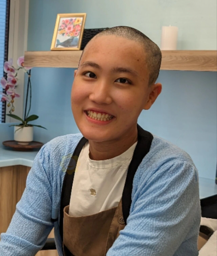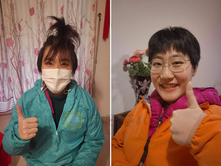 第一次化疗后,我的头发还没掉完,我也不想剃掉它们,所以为了方便,我和妈妈决定把我的头发剪短。可是因为我的免疫力特别底下,我们不敢去理发店,妈妈便找来了剪头发的剪刀,成为了造型师兼理发师。